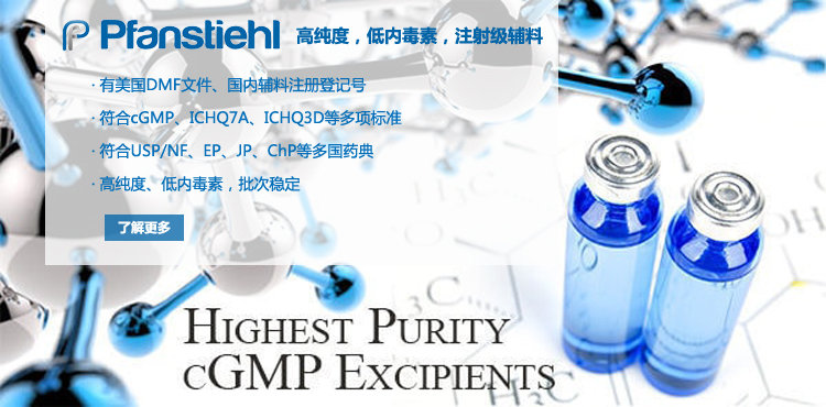 “熱烈祝賀Pfanstiehl的注射級甘氨酸Glycine(G-140)喜獲CDE登記號F20250000403, 這是Pfanstiehl產品獲得的第18個CDE登記號!”甘氨酸在醫藥輔料制劑中應用廣泛,, 可作為緩沖劑,增溶劑,穩定劑等,具有諸多優勢。Pfanstiehl秉承一貫高品質理念,為滿足全球生物制藥行業對于高品質甘氨酸的需求,隆重推出的注射級甘氨酸Glycine (G-140), 具有超高純度,超低內毒素,超低金屬殘留的特點,單獨檢測29種金屬離子,并且新增DNA,RNA,DNA酶,RNA酶和脂肪酶,亞硝酸鹽等多項質量指標的檢測,符合多國藥典規定(USP, EP, BP, JPE, ChP),可用于生物治療性藥物和疫苗的生產。產品信息:· 產品名稱:Glycine, High Purity, Low Endotoxin, Low Metals, USP, EP, BP, JPE, ChP (G-140)· 中文名稱:甘氨酸· 分子式:C2H5NO2· 分子量:75.07 g / mol· CAS號:56-40-6· 產品貨號:G-140產品特點: · 超高純度,超低內毒素,超低微生物含量,超低金屬雜質殘留· 質量指標新增DNA,RNA,DNA酶,RNA酶,脂肪酶和亞硝酸鹽檢測· 符合多國藥典:USP, EP, BP, JPE, ChP· 符合ICH Q3D標準· 符合GMP標準· 已獲DMF和CDE登記號 產品應用:· 緩沖劑· 穩定劑· 增溶劑如果您對Pfanstiehl注射級別Glycine G-140感興趣,歡迎聯系Pfanstiehl 中國區代理商北京西美杰科技有限公司獲得如下詳細的產品概況說明文件和測試樣品。Pfanstiehl Inc.最新產品系列如下,歡迎聯系北京西美杰科技有限公司獲取100g裝免費樣品。北京西美杰科技有限公司為Pfanstiehl中國代理,為客戶提供完善的技術支持與售后服務。歡迎撥打西美杰客服電話400-050-4006或者登陸網站www_xmjsci_com.cqqdjs.cn了解更多信息。 更多>